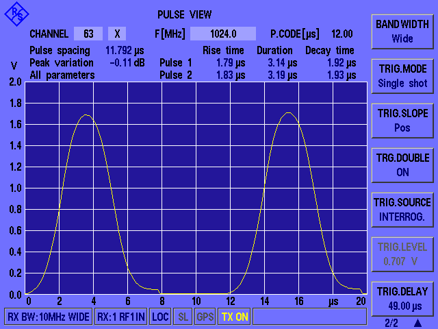 地面站的解碼器必須能精確識別正確的脈衝編碼,R&S EDST300 的詢問器允許用戶在 8.0 µs 至 42 µs 的寬範圍內自由設定詢問脈衝的間隔,透過此功能,可以驗證地面站是否僅對標稱脈衝間隔±0.4 µs 範圍內的詢問做出穩定回應,並有效拒絕偏差超過 2 µs 的無效詢問。