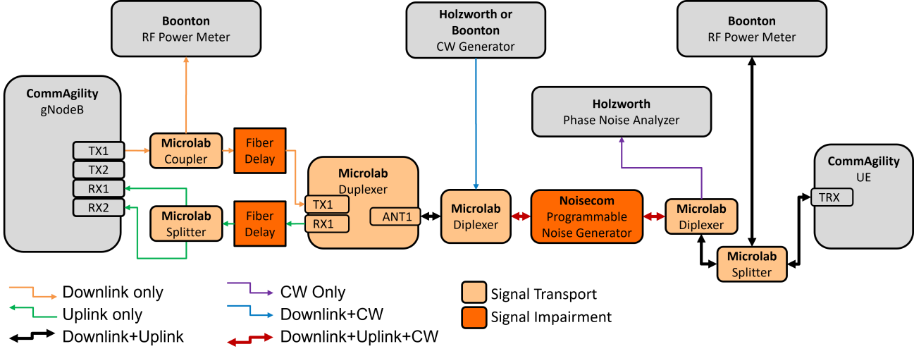 此綜合性的測試解決方案,透過精確模擬衛星網路中的訊號傳輸特性與各種潛在損耗,為 4G/5G 混合通訊網路的開發者與營運商提供了一個強而有力的驗證平台;從利用 Microlab 元件進行精密的訊號合路、處理與分配,到運用 Noisecom UFX7000B 注入可控的雜訊與干擾,再結合光纖延遲線模擬傳輸延遲,此測試配置能夠全面評估網路設備在接近真實操作條件下的效能與穩健性。