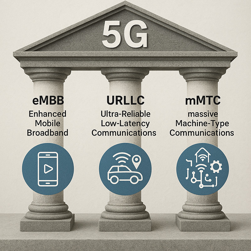 5G 的核心建立在三大支柱之上:增強型行動寬頻(enhanced Mobile Broadband, eMBB)、超可靠低延遲通訊(Ultra-Reliable Low-Latency Communications, URLLC)以及巨量機器類型通訊(massive Machine-Type Communications, mMTC)