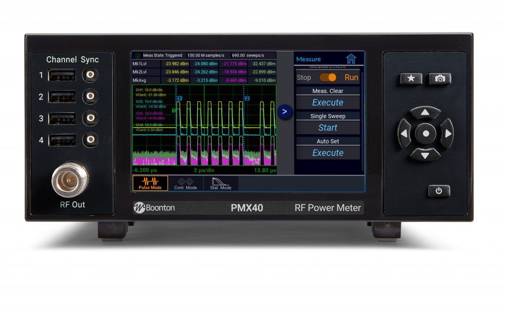 PMX40 保留了傳統桌上型儀器的實體使用者介面,但採用了現代、簡潔的設計和精簡的功能(如圖 2 所示);其具備直覺使用者介面的多點觸控顯示器,可快速進行感測器配置,並迅速存取分析工具,共同提供獨立的射頻功率量測解決方案,用於捕獲、顯示和分析時域與統計域中的峰值和平均射頻功率;該儀器最多可獨立或同步使用四個感測器,進行連續波 (CW)、調變和脈衝訊號的多通道量測。