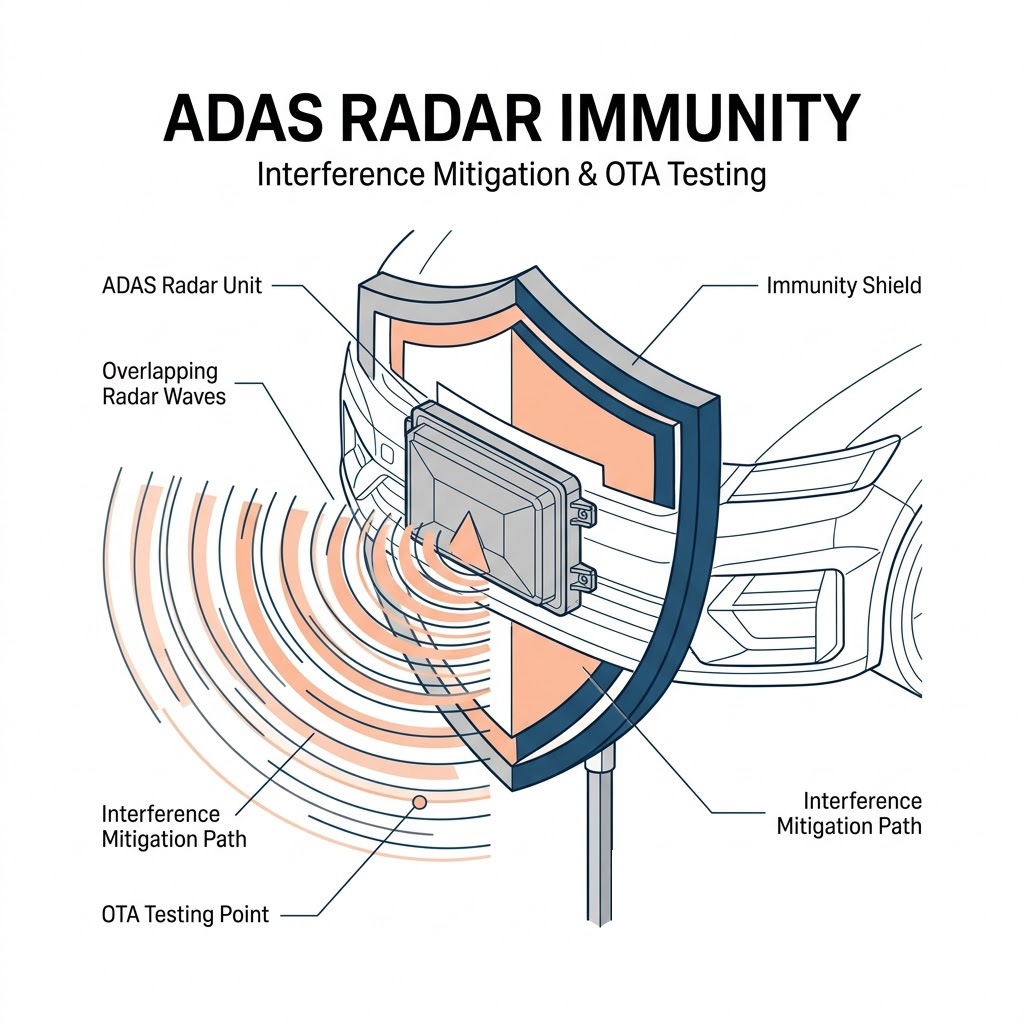 突破高密度射頻擁擠:車用雷達 (ADAS) 抗干擾免疫力與 ISAC 整合 OTA 驗證技術解析