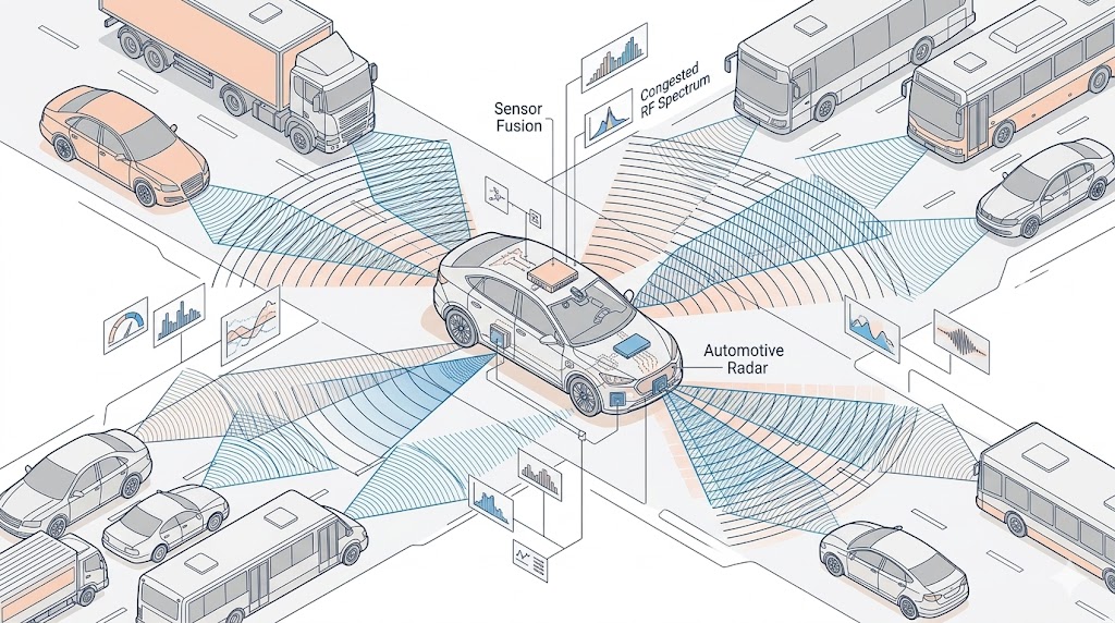 隨著全球汽車產業朝向「零事故、零死亡(Vision Zero)」的終極願景邁進,先進駕駛輔助系統(ADAS)與高度自動駕駛(AD)的普及率正呈指數型成長,在眾多環境感知技術中,毫米波雷達因其具備全天候、無懼雨雪濃霧與強光干擾的物理優勢,成為感測器融合(Sensor Fusion)架構中不可或缺的絕對主力。然而,當道路上幾乎每一輛新車都配備了三到五顆甚至更多的七十七至八十一千兆赫茲(GHz)頻段雷達時,我們正迎來一場隱形但致命的危機:高密度空間中的雷達間相互干擾(Radar-to-Radar Interference)。