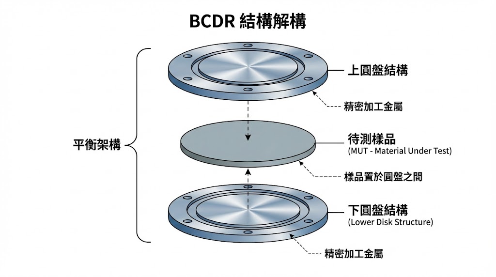 BCDR 的核心設計理念,在於解決傳統金屬腔體在高頻下尺寸過小、加工困難以及單模態頻寬受限的問題,從結構上來看,BCDR 採用了「平衡」的架構,通常由兩個經過精密加工的圓盤狀結構組成,待測樣品被置於這兩個圓盤之間。