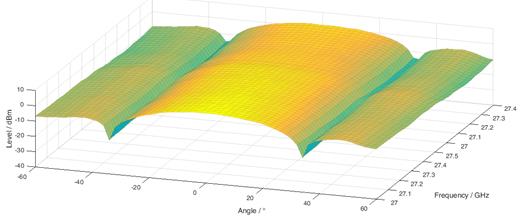 此特性使之能以極高解析度進行波束指向(beam steering),並在天線的發射模式(Tx mode)下進行波束成形(beamforming)量測,同時仍可在相同連接循環內執行 S 參數量測。