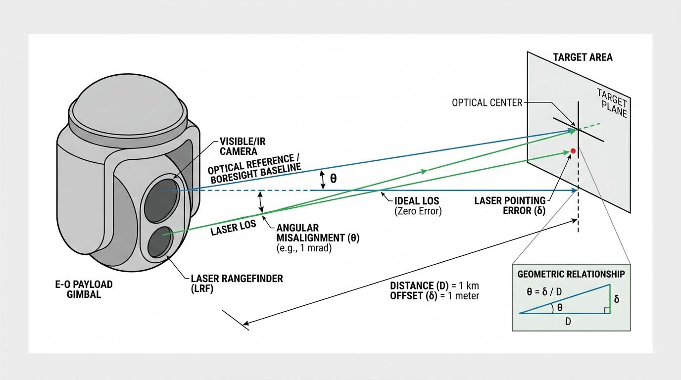 在現代光電載荷(E-O Payloads)的設計中,將可見光相機、中長波紅外線熱像儀以及主動式的雷射測距儀(LRF)或雷射標定器(LTD)整合於單一雲台系統已是標準架構,這類系統的運作前提是:所有感測器的光學視線(Line of Sight, LOS)必須在三維空間中指向同一座標。