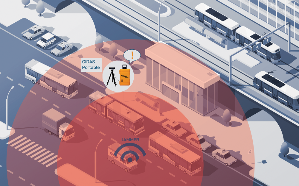使用GNSS干擾器發射大功率雜訊或特定波形,目的在癱瘓特定區域內的GNSS服務;對於依賴GNSS進行同步的系統,如5G基站,Jamming攻擊可能導致其服務中斷或效能嚴重下降。