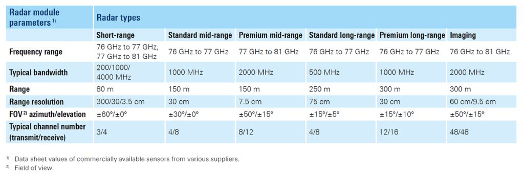 FOV 和角度解析度的值由不同的距離決定,根據距離和頻率範圍,適用以下值: