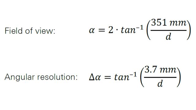 R&S®QAT100 的視場 (FOV) 和可實現的角度解析度基於設置,計算方法如下: