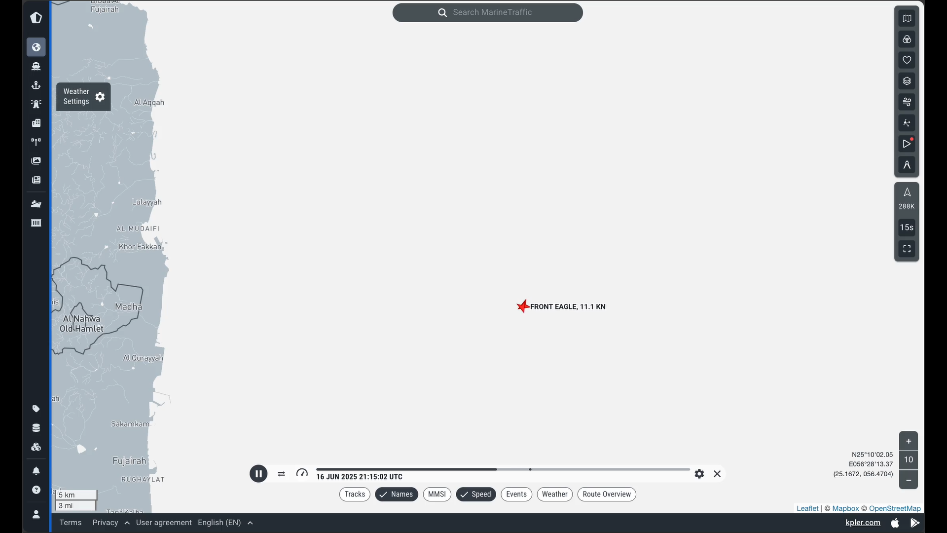 According to #MarineTraffic data, the Liberian-flagged Front Eagle was laden and headed for Zhoushan, China.