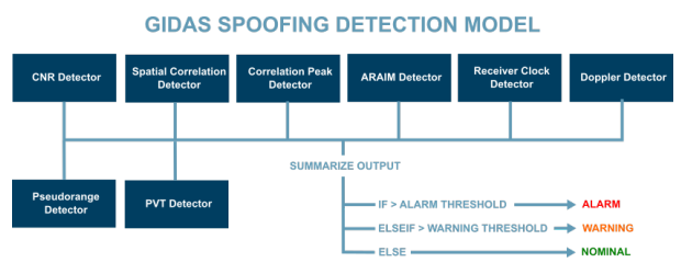 圖說:GIDAS 欺騙偵測模型展示了更進階的技術,如利用空間相關性(多天線)、相關峰值形狀、接收機鐘差及自主完好性監測(ARAIM)等指標,來識別更隱蔽的欺騙攻擊。