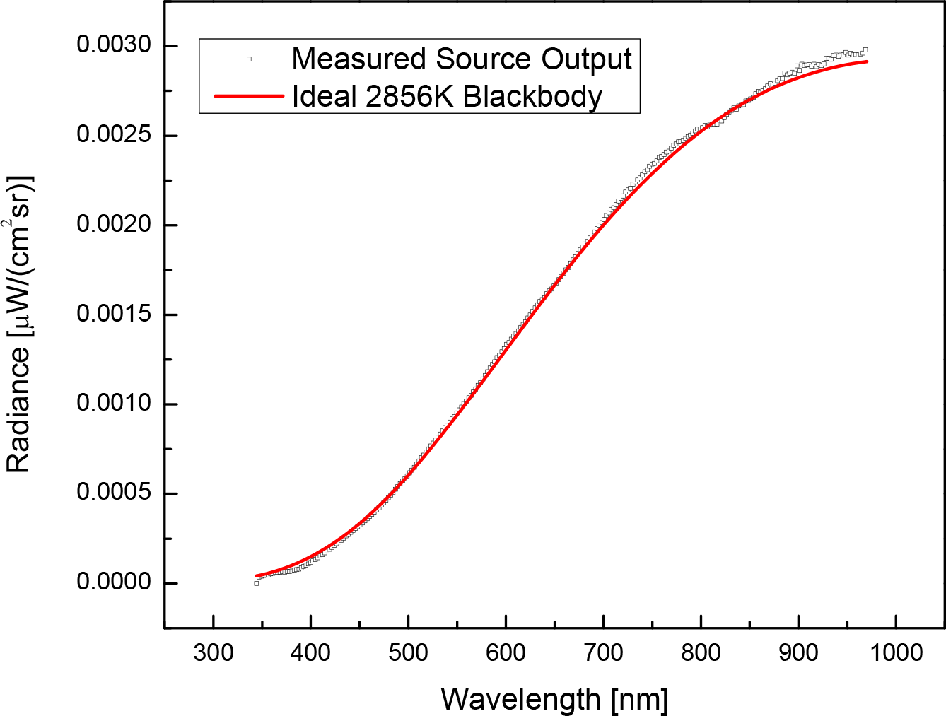 圖 1. VSX 光譜與 2856 K 理想黑體光源之比較。