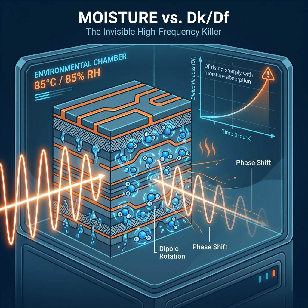 吸濕性對 Dk/Df 的影響:為什麼高濕度會毀了你的高頻電路?