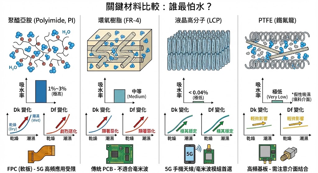 水分子不僅會增加 Dk,更是訊號能量的殺手。