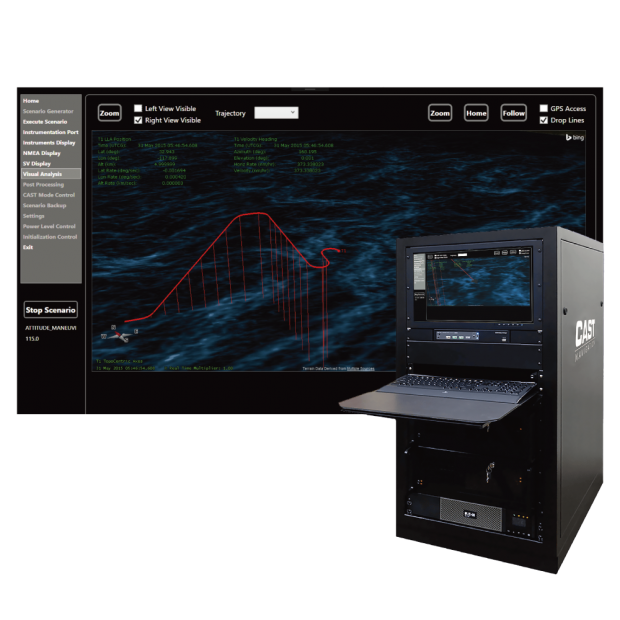 利用CAST GNSS/INS即時模擬平台,根據預設的AMR/AGV運動軌跡,同步產生高傳真的GNSS RF訊號(已疊加通道與干擾效應)和IMU數位數據流(可注入偏置、雜訊等誤差模型),饋入待測的融合定位引擎。 - 結合六軸運動平台的物理動態驗證: