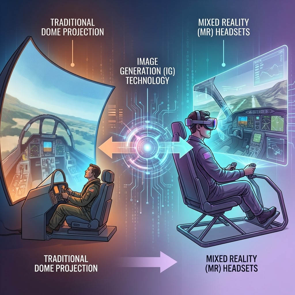 在現代國防與航空訓練領域,如何以最低的成本換取最高擬真度的訓練效果,一直是產業追求的聖杯,從傳統巨大的圓頂投影系統到如今輕便的混合實境(Mixed Reality, MR)頭戴裝置,背後的驅動力來自於「影像產生(Image Generation, IG)」技術的飛躍性突破,本文將深入解構 Quantum3D 等大廠採用的核心技術,探討如何透過 COTS 硬體與先進演算法,在虛擬戰場中實現視網膜級的視覺體驗。