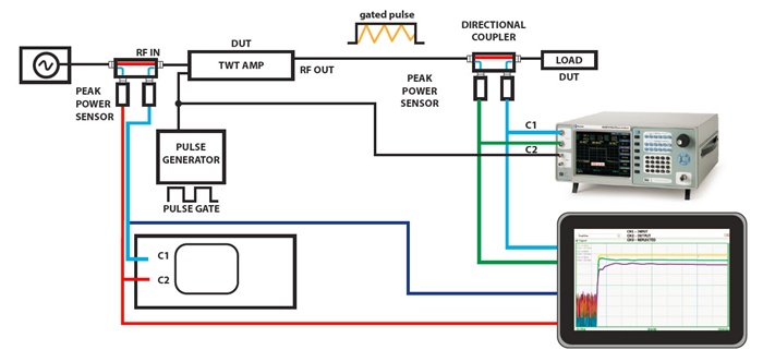 脈衝射頻訊號最關鍵的分析發生在時域,由於峰值功率計時域中量測、分析並顯示射頻訊號的功率封包,因此它們是量測、分析及特性分析脈衝雷達應用中高功率放大器異常與行為的重要工具,圖 1 顯示了桌上型峰值功率計的簡化方塊圖。