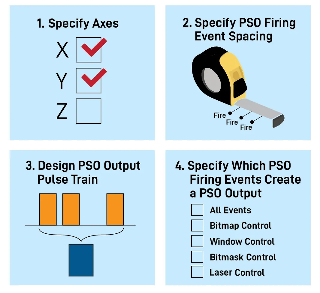 圖 2. Aerotech 的位置同步輸出可透過四個簡單步驟完成設定。