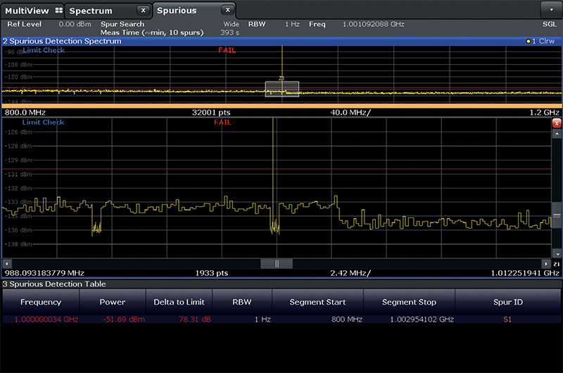 在偵測到潛在雜散後,工程師可以進行局部放大搜索來確認其真實性: