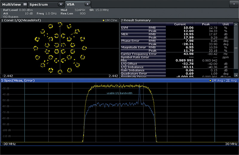 諸如 EVM、BER、訊號振幅和相位等關鍵參數,可以透過配備 R&S®FSW-K70 向量訊號分析 (Vector Signal Analysis, VSA) 的 R&S®FSW 訊號與頻譜分析儀輕鬆監測,R&S®FSW-K70 VSA 選項能透過以下方式,確定衛星發射/接收訊號的品質: