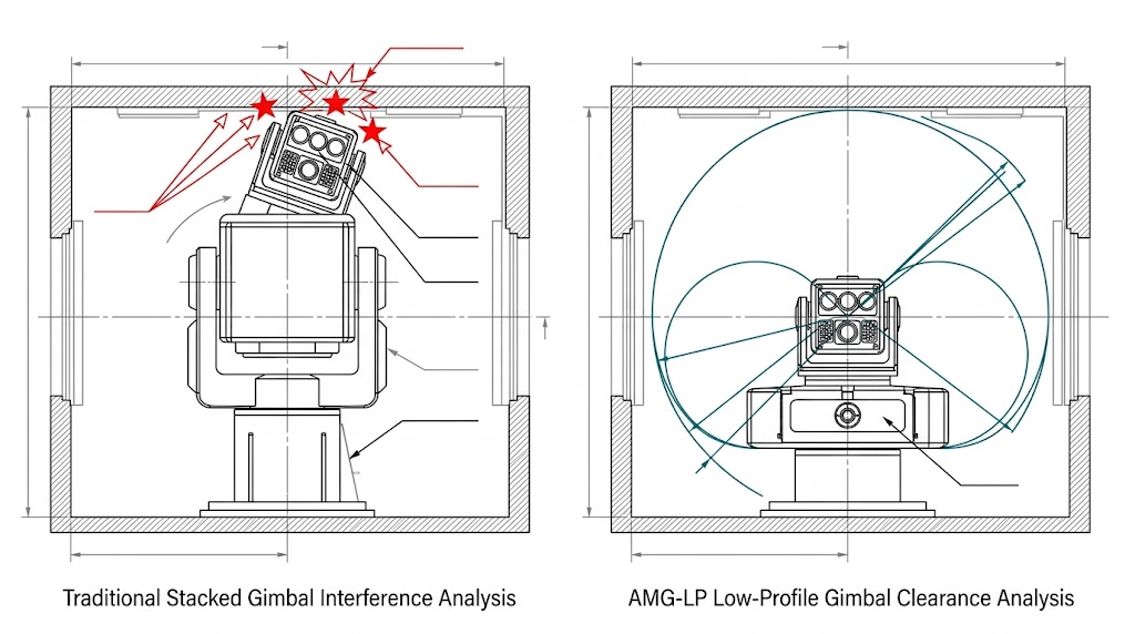 傳統堆疊雲台的「超高截面(High Profile)」與艙體干涉