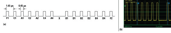 圖 3:模式 A 與 C 的應答序列 (a) 與波形 (b)。模式 C 不使用 D1 脈衝。
