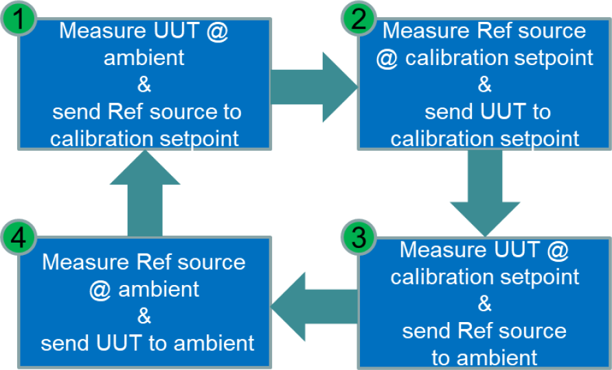 在量測得到兩個輻射源之間的輻射亮度差異後,便可以透過將待測單元 (UUT) 的響應與NIST可追溯參考源的響應進行比較,來精確計算出待測單元的發射率。
