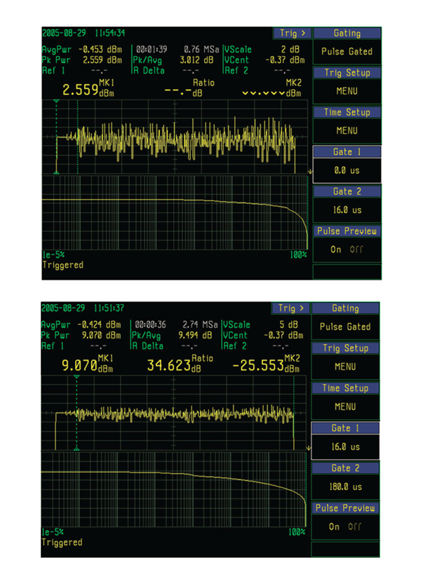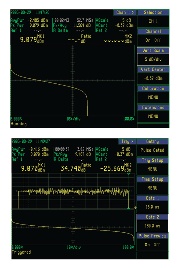 對於 AM 調變訊號而言,顯然僅需擷取數百個樣本即可量測訊號的峰值功率;然而,數位 OFDM 訊號的峰值偏移可能每百億次才會出現一次,針對這些訊號類型,功率計必須在一段時間內擷取大量樣本,才能準確地描述功率分佈特性。