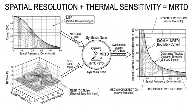 進入 2026 年,無人機 (UAV) 所搭載的熱影像系統 (FLIR) 規格琳瑯滿目,當系統工程師在評估夜視鏡頭時,經常會看到「雜訊等效溫差 (NETD)」與「調變轉換函數 (MTF)」這兩個數據,然而 NETD 僅代表相機的純粹熱靈敏度,MTF 僅代表光學系統的空間解析度,兩者皆無法單獨反映出一個關鍵的實戰問題:「操作員到底能在多遠的距離外,看清楚並辨識出一台具備微小溫差的敵方裝甲車?」
