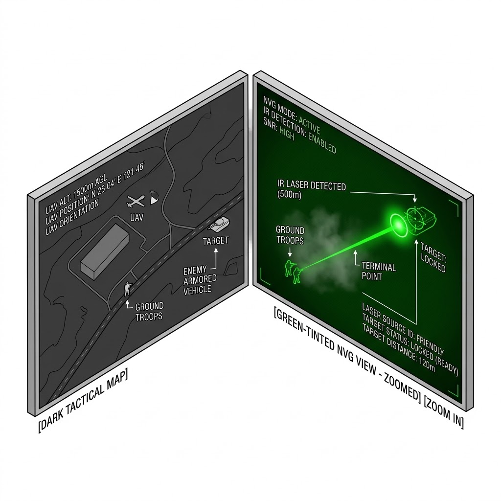 鎖定雷射目標:無人機與地面部隊在夜視鏡(NVG)下的協同指引