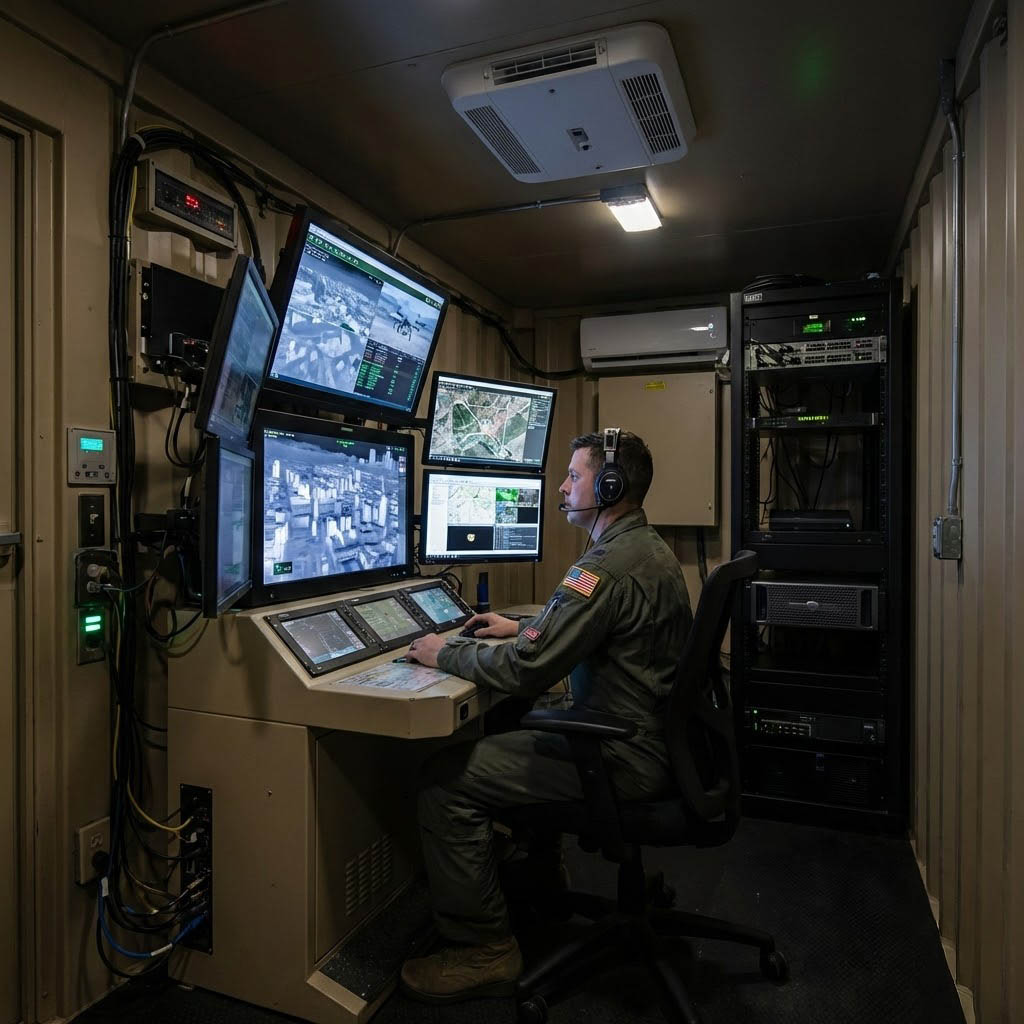 在現代戰爭與高階監控任務中,飛行員不再坐在駕駛艙內,而是身處數千公里外的貨櫃或堅固的箱子前,透過「地面控制站(Ground Control Station, GCS)」指揮天空中的眼睛。