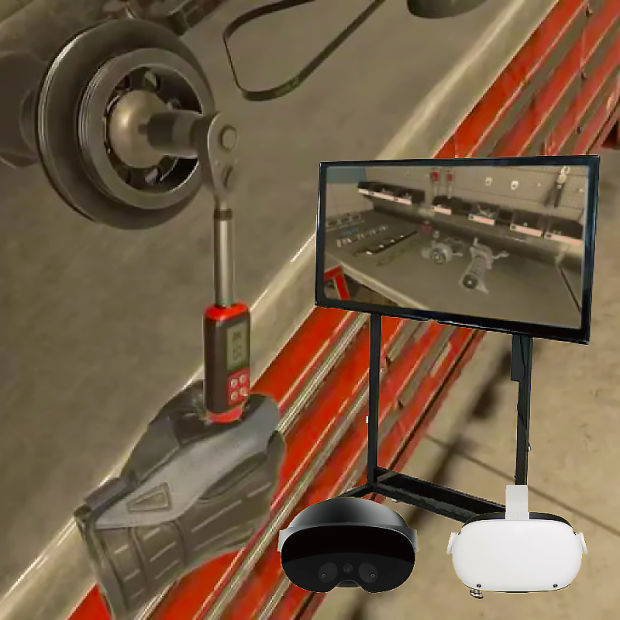 透過高擬真度的虛擬焊接環境與帶有觸覺回饋的模擬焊槍,讓學員能夠練習多種焊接方法、不同焊接位置(平焊、立焊、仰焊等)以及不同金屬材質的焊接技巧,有效降低實體練習中大量的材料消耗與有害氣體排放。 - 引擎組裝VR模擬器: