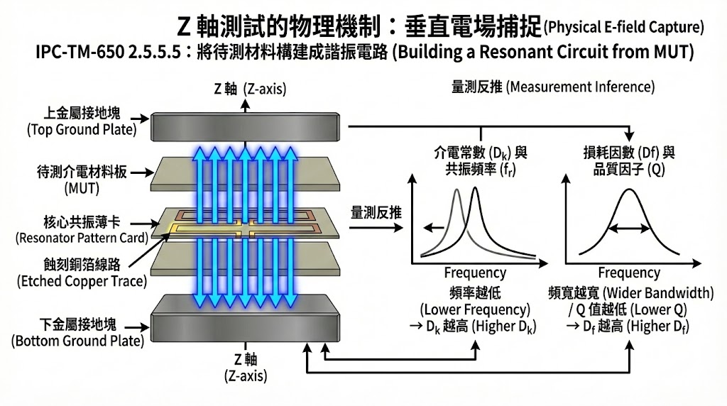 本文將深入探討 Z 軸介電特性量測的物理機制,並解析符合 IPC-TM-650 2.5.5.5 規範的 帶狀線共振法 (Clamped Stripline Resonator) 如何成為解決此問題的關鍵技術。