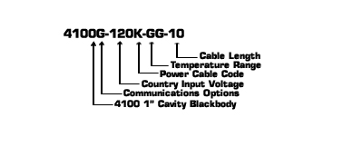 為了讓客戶能精確訂購符合其特定需求的配置,SBIR 的腔體黑體系統採用模組化的訂購方式,可依據客戶指定的以下六項關鍵特性來組合出獨一的零件編號,這些特性包含:黑體型號、通訊選項、輸入電壓、電源線類型、溫度範圍及纜線長度。
