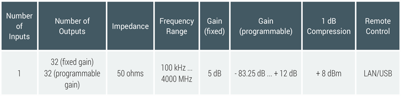 - 主動多耦合器:可將單一路射頻訊號分配至多個輸出端,常用於多點同步接收應用;