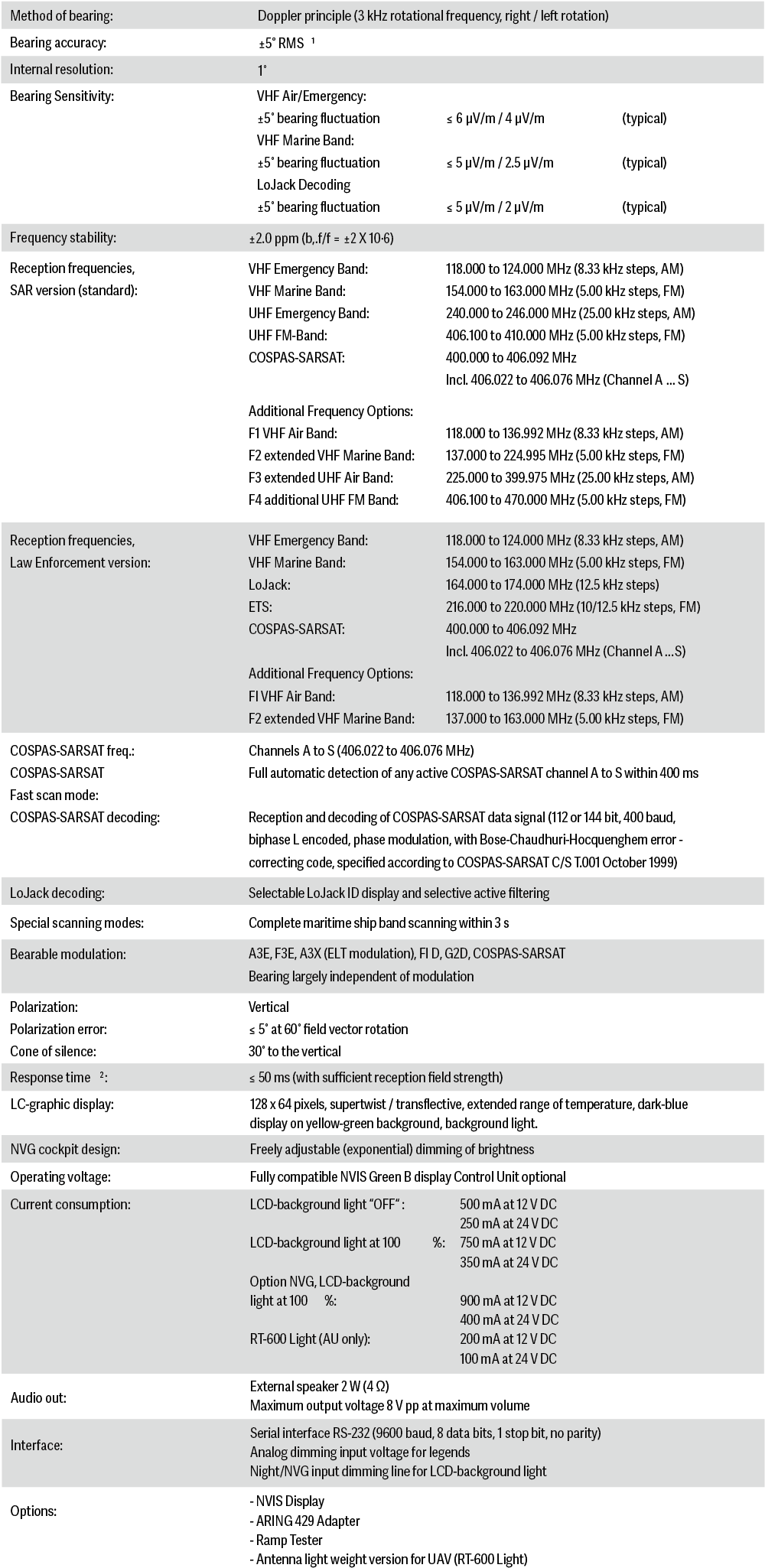 RT-600 (SAR-DF 517) 是一款用於空中搜救 (SAR, Search and Rescue) 的多頻段機載測向儀,能夠在所有救援任務使用的頻段上運作,包括以下緊急頻率: