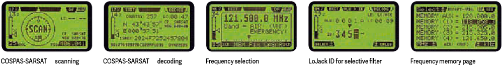 - 自動掃描所有 COSPAS-SARSAT 頻道,掃描時間僅 400 毫秒