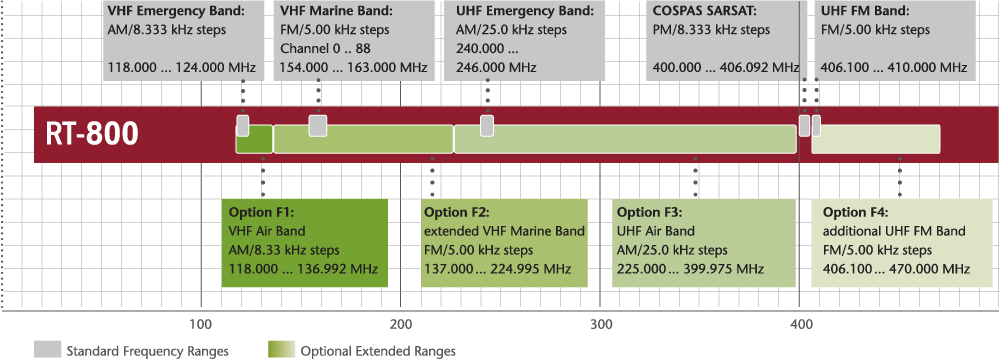 - F2 VHF-海事頻段:137,000 – 224,995 MHz