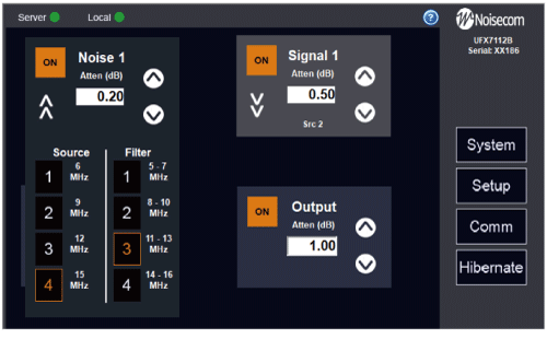 UFX7000B 標準射頻配置,包含一個寬頻雜訊源與雜訊路徑衰減器,具備 最高 127 dB 的衰減範圍,步進 0.1 dB,並可選配不同的衰減範圍與步進設定,以符合特定測試條件;此外,使用者可依需求選擇 低通(Low Pass)、高通(High Pass)、帶通(Band Pass)或帶阻(Band Reject)濾波器,自由組合以最佳化測試結果。