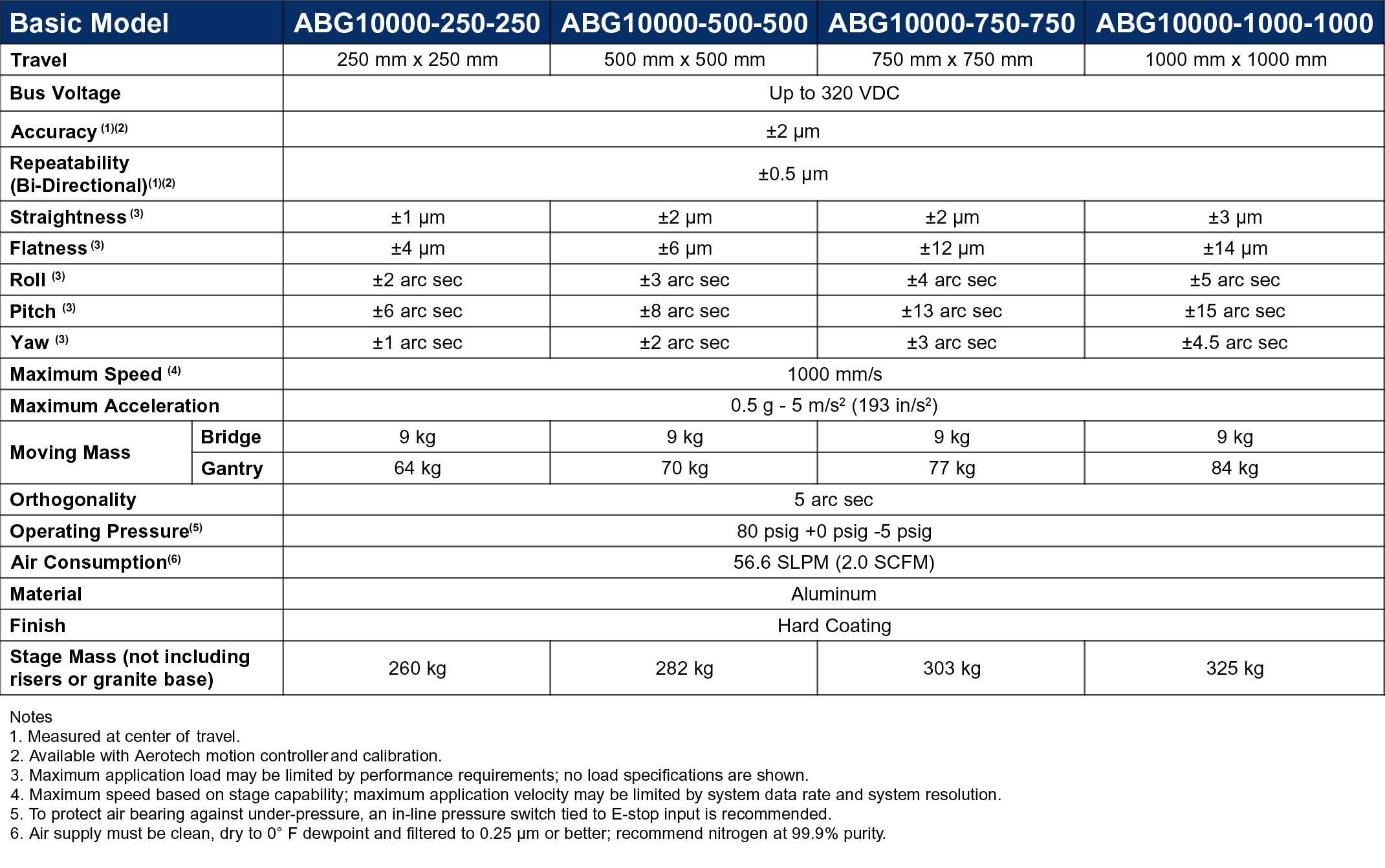 ABG10000 空氣軸承直驅式龍門系統結合 Aerotech 領先技術與卓越製造能力,專為高速取放、自動組裝、視覺檢測及高精度檢測打造,提供極致運動精度與穩定性。