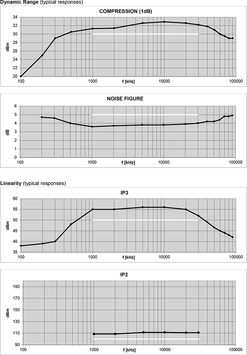 - 高二階交調點(OIP2)典型值 +110 dBm,適用於雜訊與干擾敏感環境