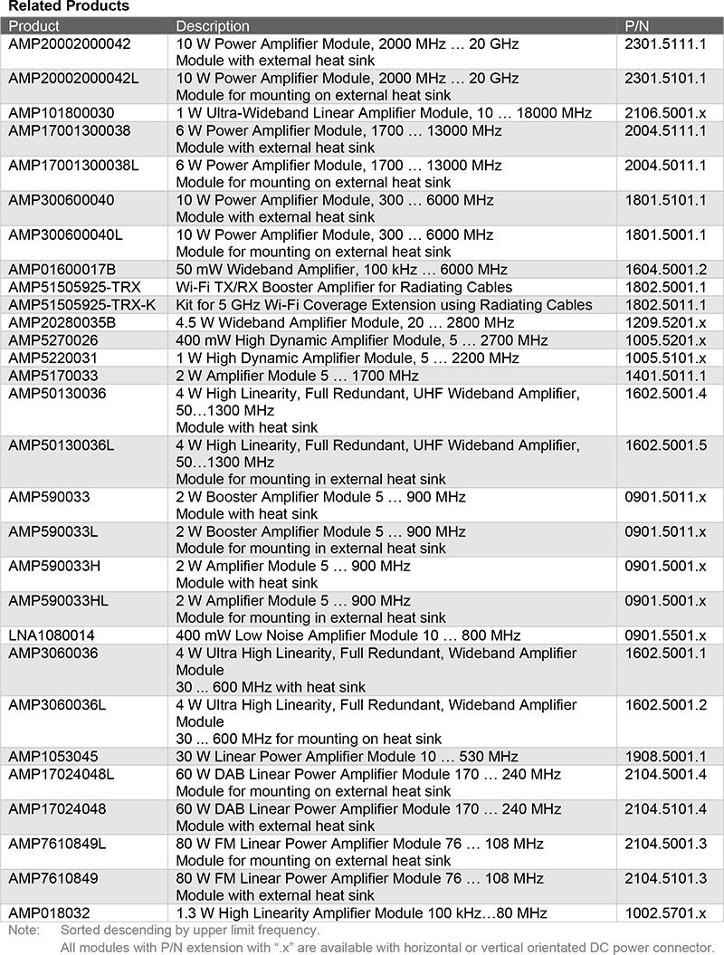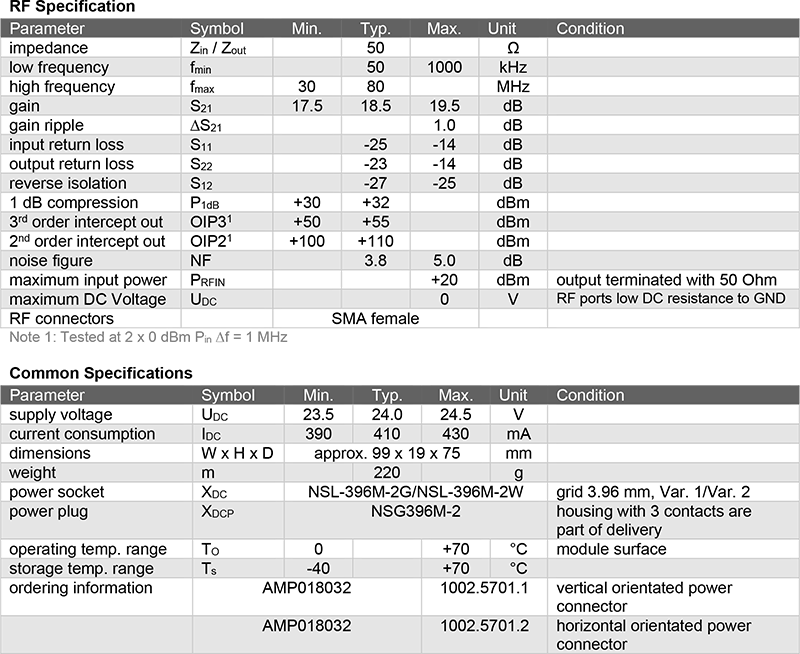 AMP018032 高線性寬頻放大器模組 (1.3W, 100 kHz~80 MHz)