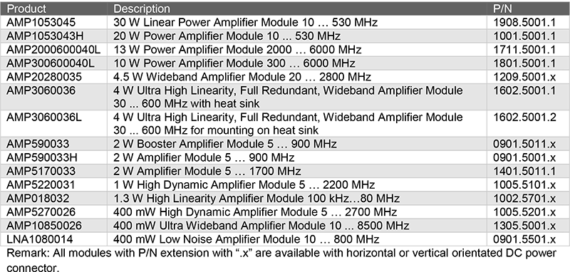 AMP1053043H 可直接應用於無線電通訊設備之發射模組中,並已通過 ETSI EN 300 086 V2.1.2 標準測試,此標準為歐盟 RED 指令(2014/53/EU)之調和標準之一,涵蓋了發射器在雜散訊號(Spurious Emissions)與交互調變干擾(Intermodulation Resistance)方面之嚴格要求;模組設計完全符合該標準,有助於設備通過歐盟市場安規與通訊認證流程。