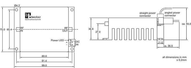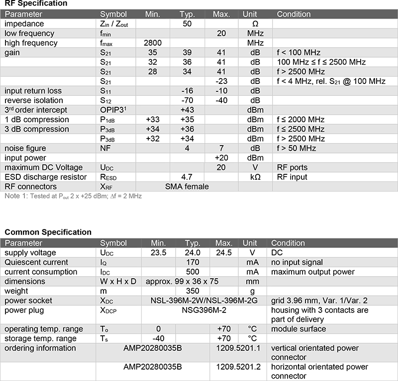 Becker 所推出之 AMP20280035B,為一款採用 50 歐姆技術設計之小型化射頻放大器模組,專為各類專業應用領域所打造。該機種具備堅固的電氣與機構設計,可在嚴苛環境中長時間穩定運作;其放大器可在涵蓋多個八度的寬頻範圍內維持穩定增益表現,適用於多種無線通訊頻段。