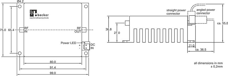 AMP590033H-R 採用 50 ohm 技術架構,搭配優化的電氣與機械設計,可在多倍頻段內長時間穩定運作,提供 高達 2 W 的實效功率輸出。內建濾波器與低雜訊電壓供應,有效抑制雜散訊號,強化整體放大品質與訊號純淨度。