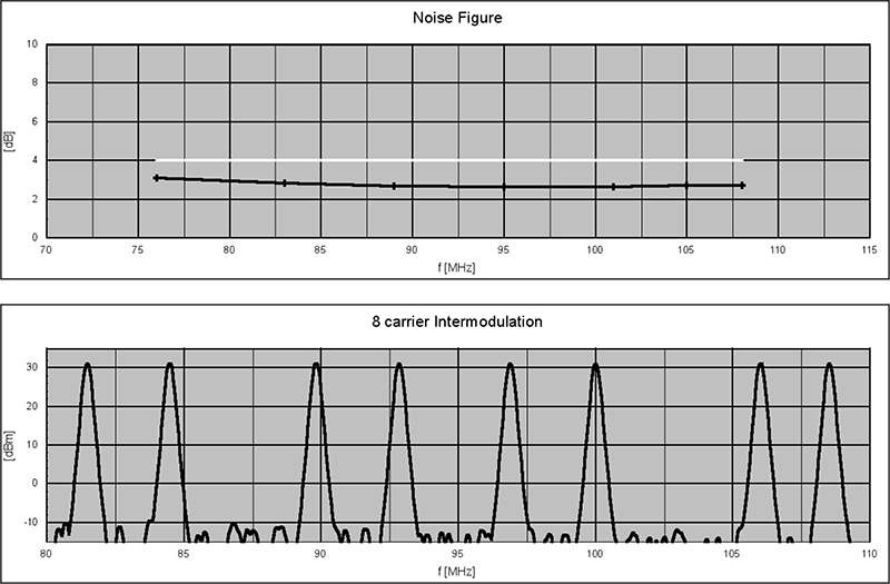 高 IP3 特性(第三階互調指標)使此放大器模組適用於需放大數位調變訊號與多載波訊號等專業應用,能有效避免失真效應;模組內建自我監測功能,可即時監控電流消耗與模組溫度;當超過安全限制時,會啟動開漏輸出(Open Drain)以通知使用者,並透過模組上的 LED 燈顯示狀態變化。