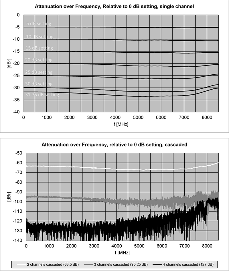 ATT-8E 具備 8 組獨立的步進衰減器;模組內部提供高度通道隔離,可讓各通道獨立處理不同訊號,彼此間無干擾。