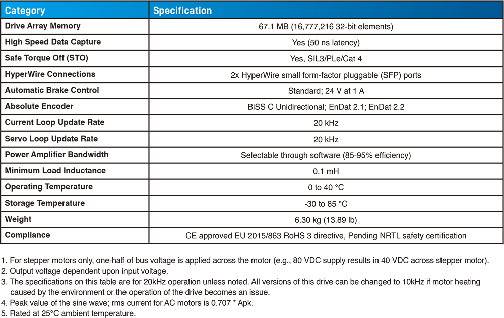 Automation1 XC6e 將眾多關鍵功能列為標準配備,其中包括安全扭矩關閉 (STO)、一個可容納超過 1,600 萬個 32 位元元素的資料陣列、數位與類比 I/O、位置同步輸出 (PSO, Position Synchronized Output)、專用的原點與行程終點極限輸入,以及一個增強型電流感測裝置,此外,該驅動器還內建了內部匯流排電壓監測、過電壓保護、一個 300W 的整合式分流電阻與整合式冷卻風扇。