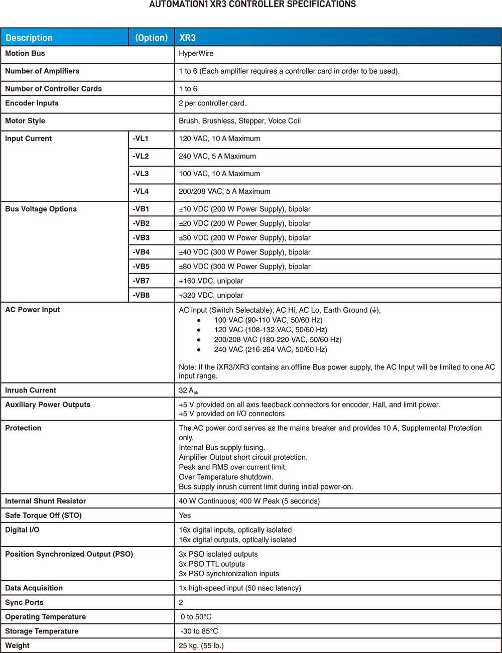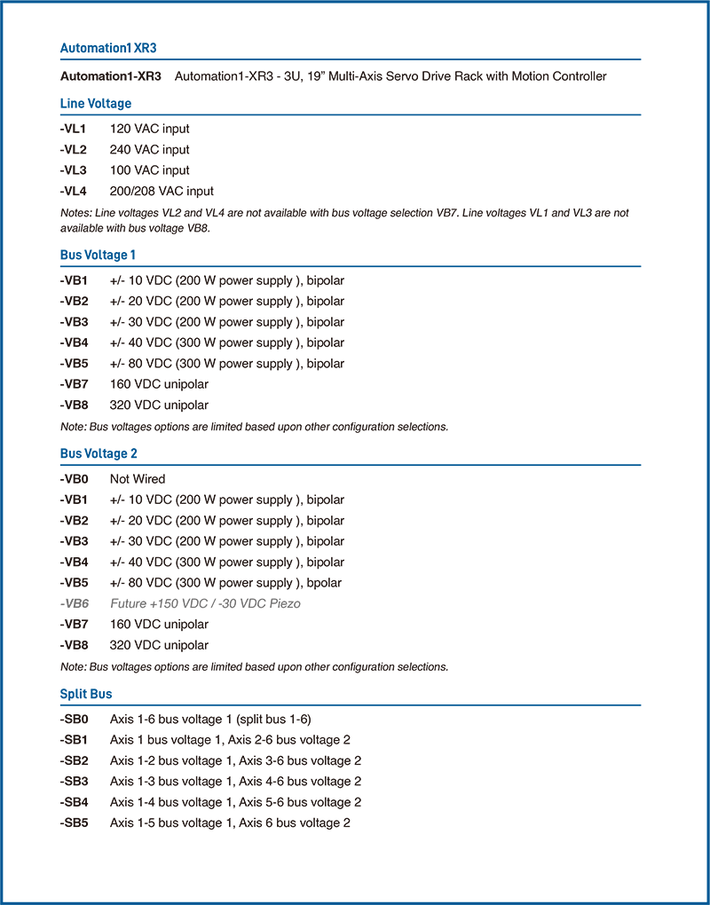 XR3 的配置選項包含三種不同等級的整合式編碼器倍頻、散熱選項、安裝選項,以及低延遲的位置同步觸發控制 (PSO) 選項。