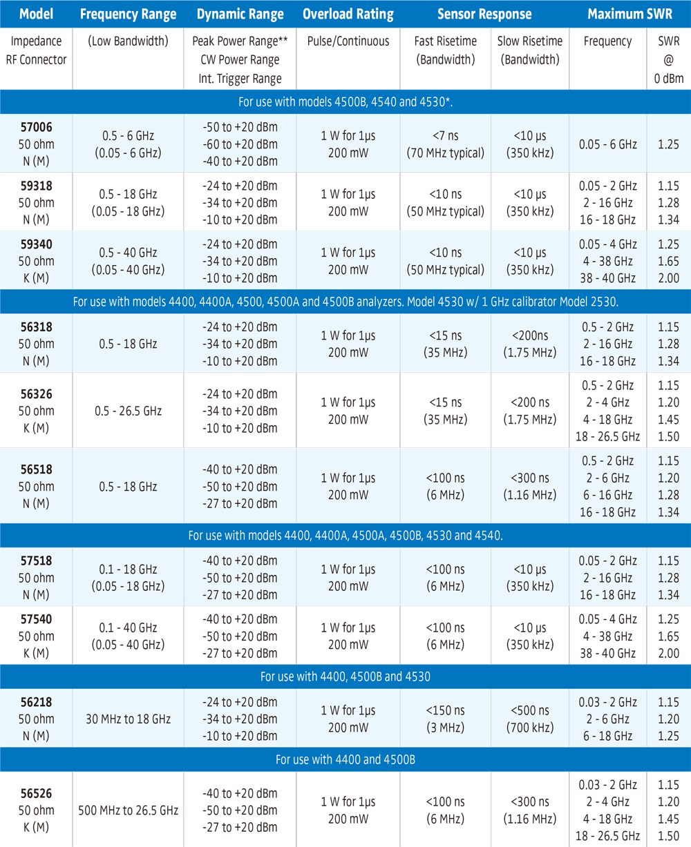 感測器的上升時間需快於調變訊號,Boonton 提供多種峰值功率感測器,涵蓋廣泛頻率範圍,確保量測具備最寬動態範圍及最快的上升時間。