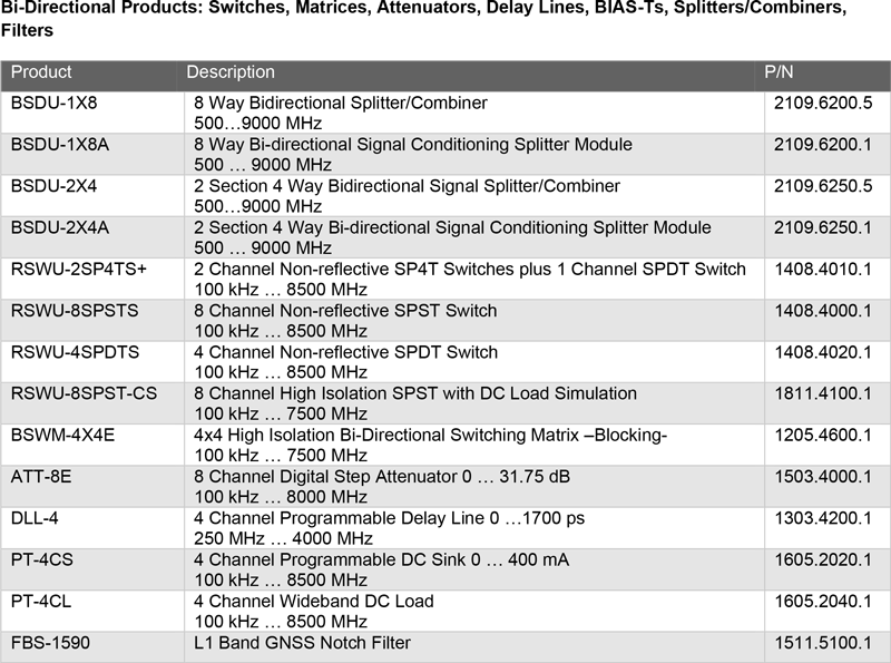 - 雙向分波/合路器等訊號調理模組